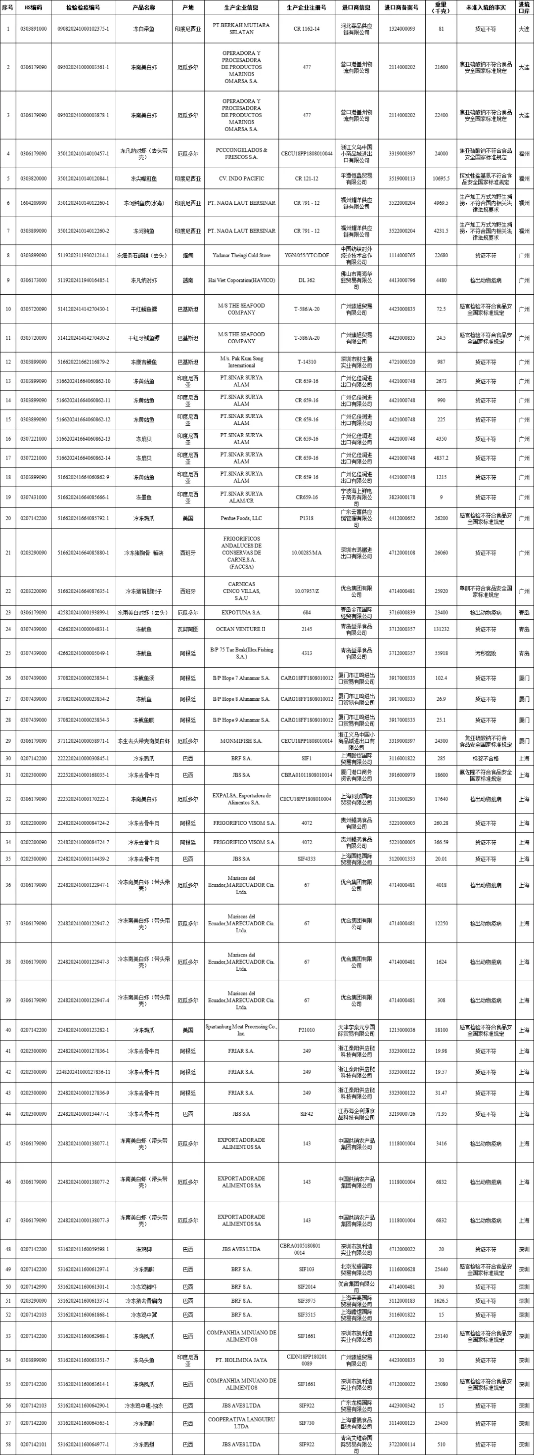普悦 ·关注 | 2024年11月全国未准入境 猪、牛、羊、禽、水产品信息