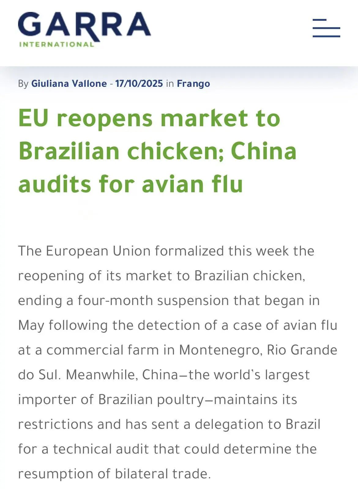 总体来看,巴西鸡肉的全球贸易正在走出此前禽流感疫情的阴影,迎来积极转折。欧盟作为重要市场,已采取分阶段方案全面恢复进口,并重启了简化贸易流程的预审制度,这标志着对巴西卫生监管体系的高度认可,为未来出口增长铺平了道路。