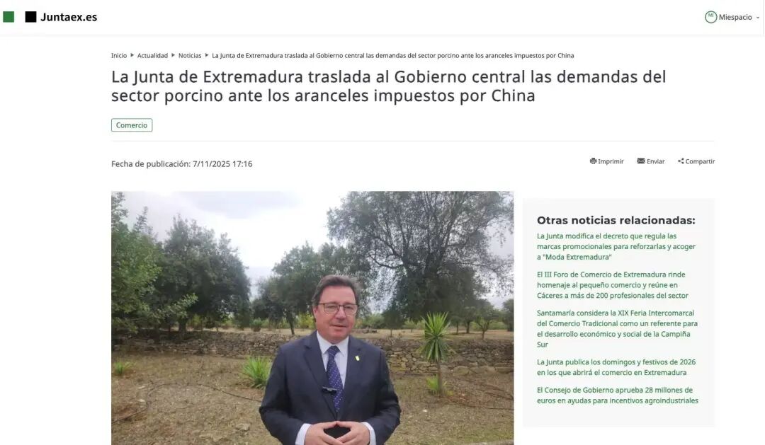 埃斯特雷马杜拉自治区政府日前致函西班牙经济部,敦促中央政府就中国对欧盟猪肉采取的临时反倾销保证金措施向中方交涉,争取取消或降低税率。