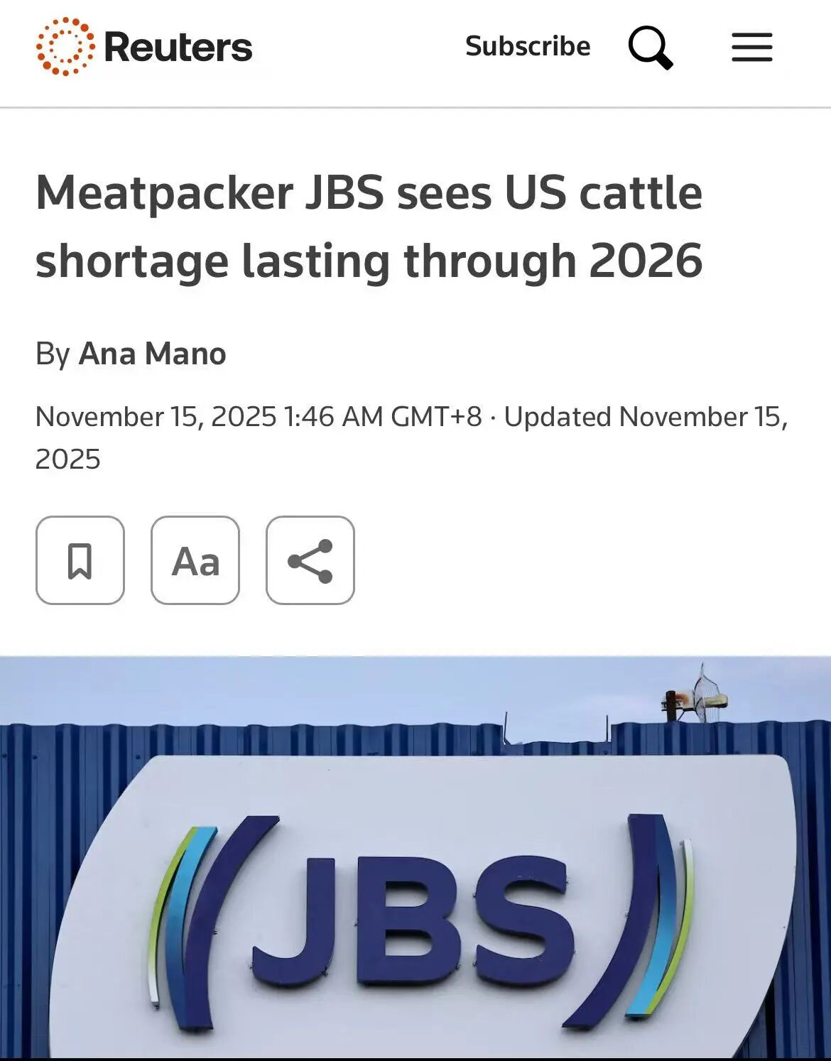 普悦 ·资讯 | JBS预警美国牛肉供应持续紧张,行业复苏需待2027年后