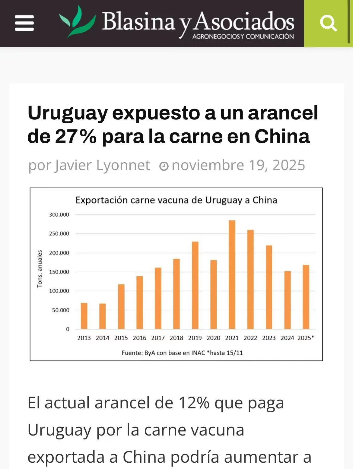 普悦 ·资讯 | 乌拉圭牛肉输华关税或翻倍,配额制度悬而未决,出口商紧急评估市场冲击