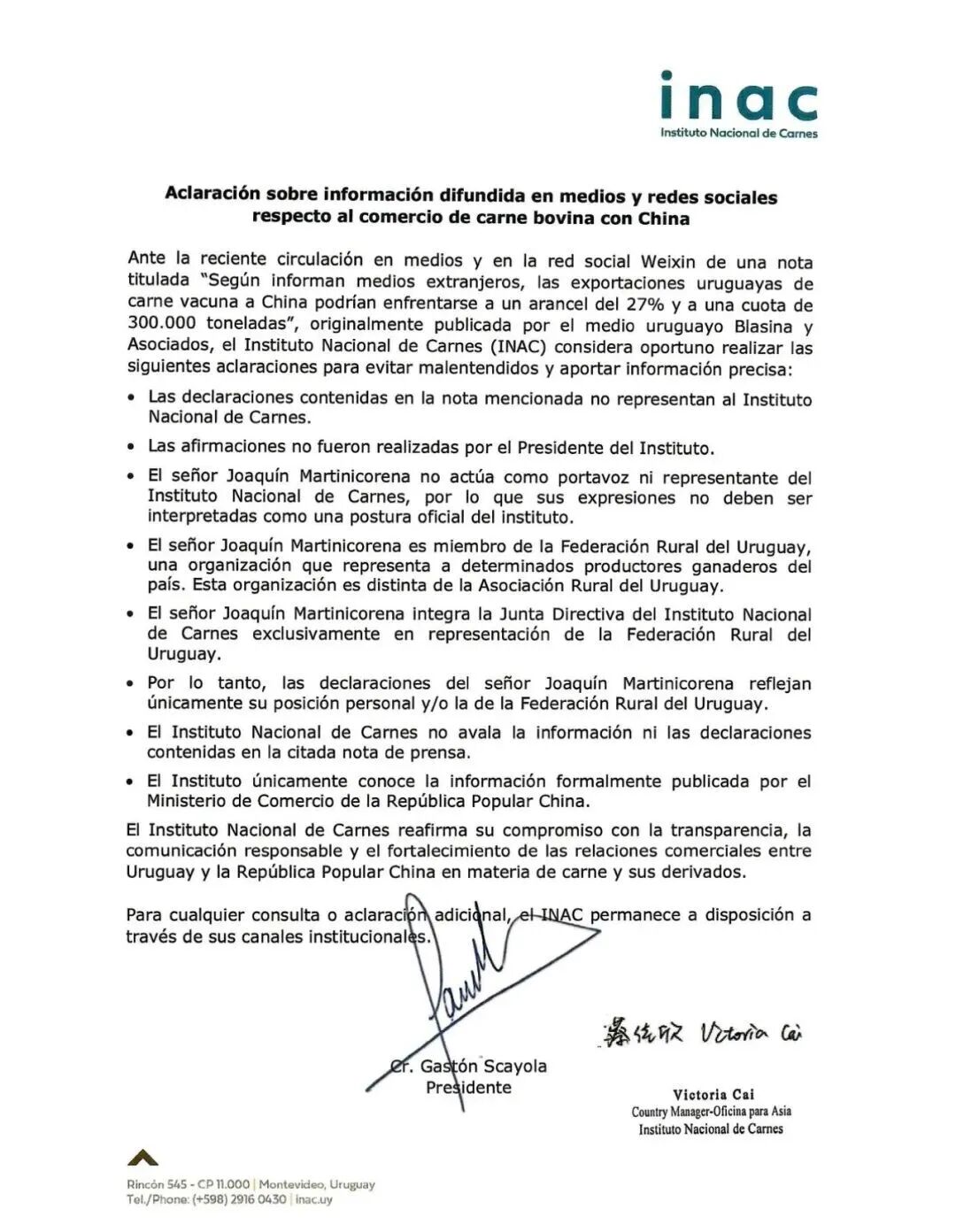 普悦 ·资讯 | 乌拉圭国家肉类协会关于在媒体及社交网络上传播的对华牛肉贸易信息的澄清