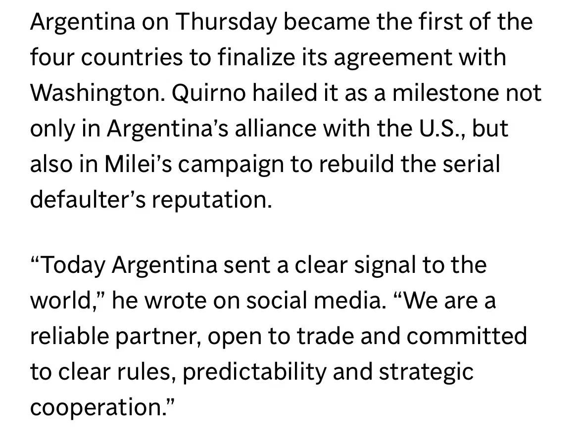 协议同时反映出双方在政治与战略层面的靠拢。米莱上任后多次访美,两国在多项政策上协调一致。尽管协议细节与实施时间表尚未完全公布,但对阿根廷畜牧业与整体经济而言,这项贸易突破无疑是一次历史性机遇。