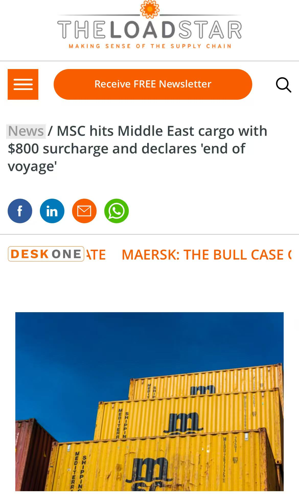 普悦 ·资讯 | MSC对中东货物加收800美元附加费,宣布“航程终止”