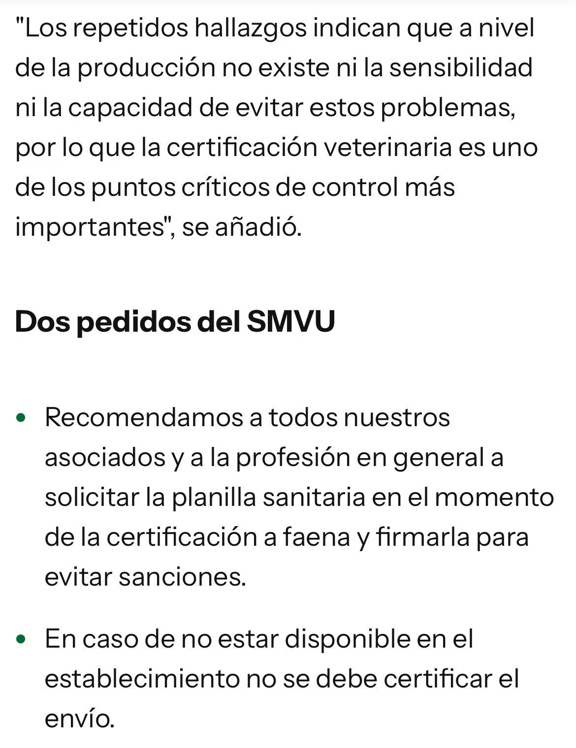SMVU提出两项建议:一是兽医在认证作业时必须索要并签署健康申报表;二是若养殖场无法提供该文件,则不得对该批次进行认证。