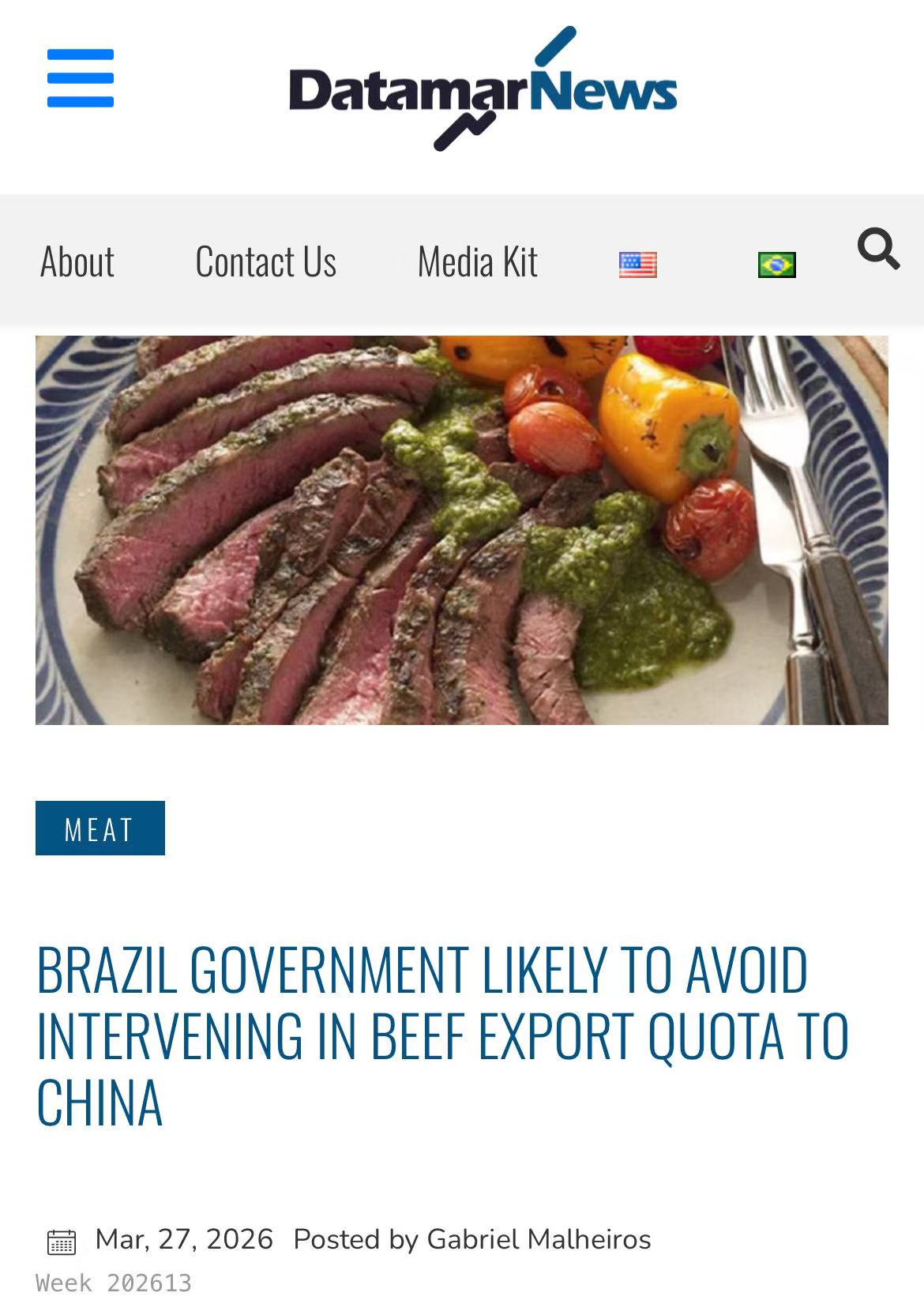 据巴西媒体报道,尽管肉类出口商多次呼吁建立官方管控机制,但该议题未能进入3月26日外贸委员会(Camex)的会议议程,短期内审议无望。