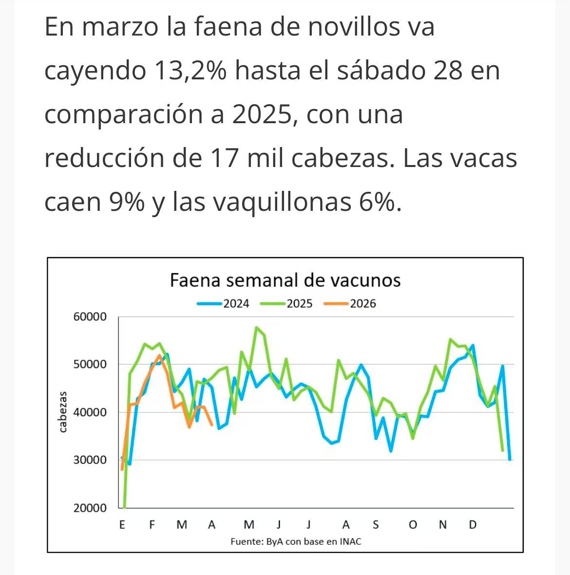 乌拉圭国家肉类协会(INAC)最新数据显示,截至3月28日,2026年一季度牛只累计屠宰量52.2万头,较去年同期减少6.2万头,降幅达10.6%。