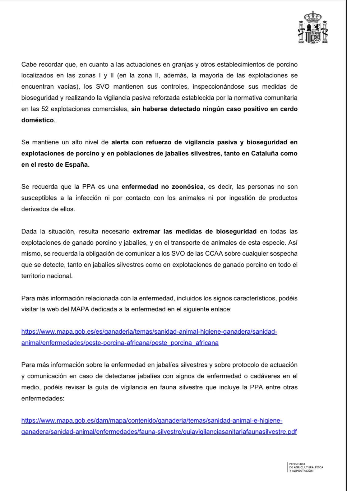 这一调整方案已经在上周四的欧盟植物、动物、食品和饲料常设委员会会议上获得表决通过,并于4月27日通过欧盟《(EU) 2026/985号实施条例》正式公布。在加泰罗尼亚地区,受限制的市镇数量已增至19个,具体管控措施包括:严格限制进入自然环境、禁止狩猎以及加强野猪尸体搜寻等。