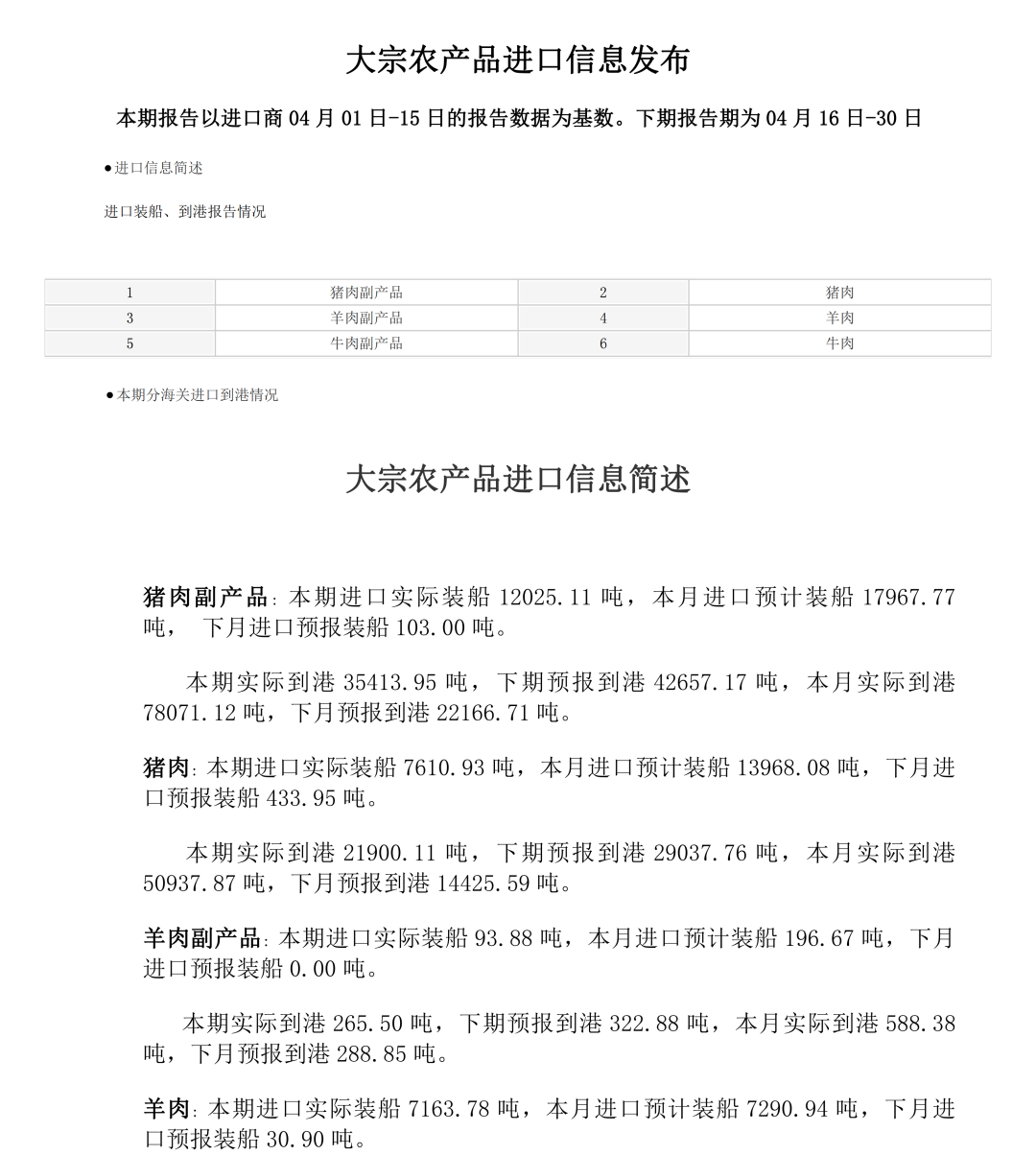 普悦 ·资讯 | 大宗农产品进口信息发布(肉类)