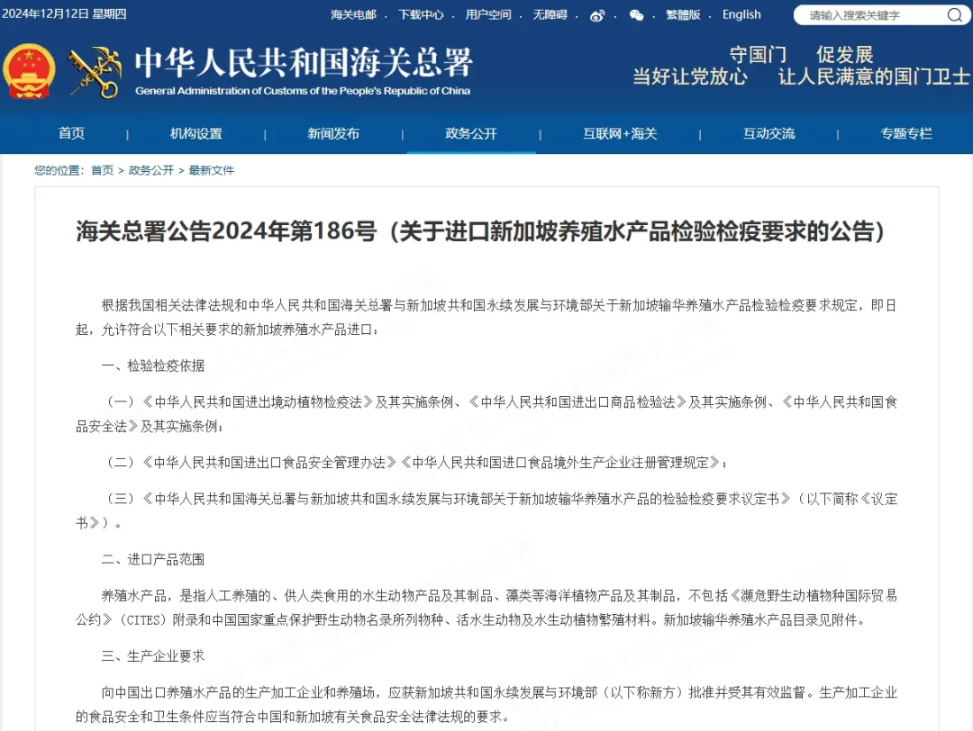 海关总署公告2024年第186号