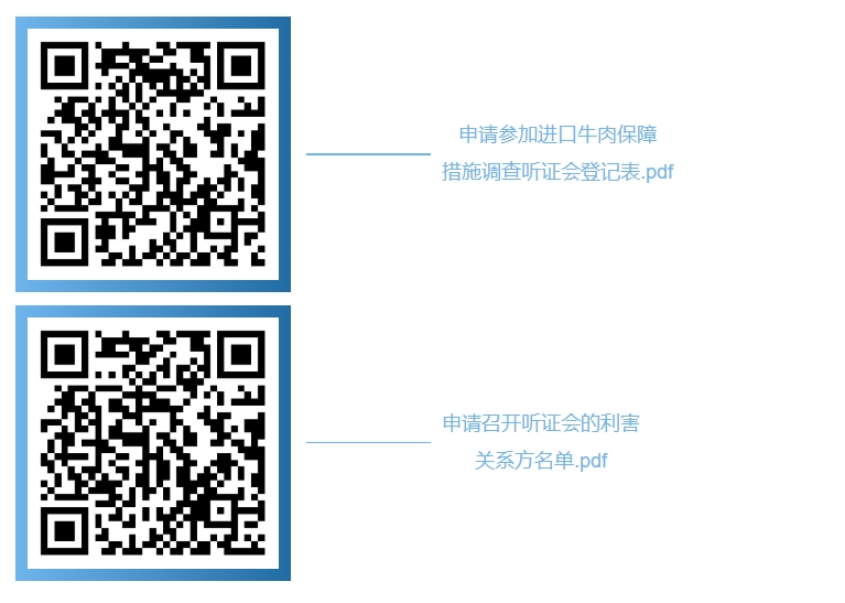 二、申请参加听证会的利害关系方,应填写《申请参加进口牛肉保障措施调查听证会登记表》(见附件),并在2025年3月18日下午17:00前将登记表传真至商务部贸易救济调查局或上传至“贸易救济调查信息化平台”。如果利害关系方未在本通知规定的时间内向商务部递交申请,商务部有权拒绝其参加听证会,拒绝接受其递交的有关材料。