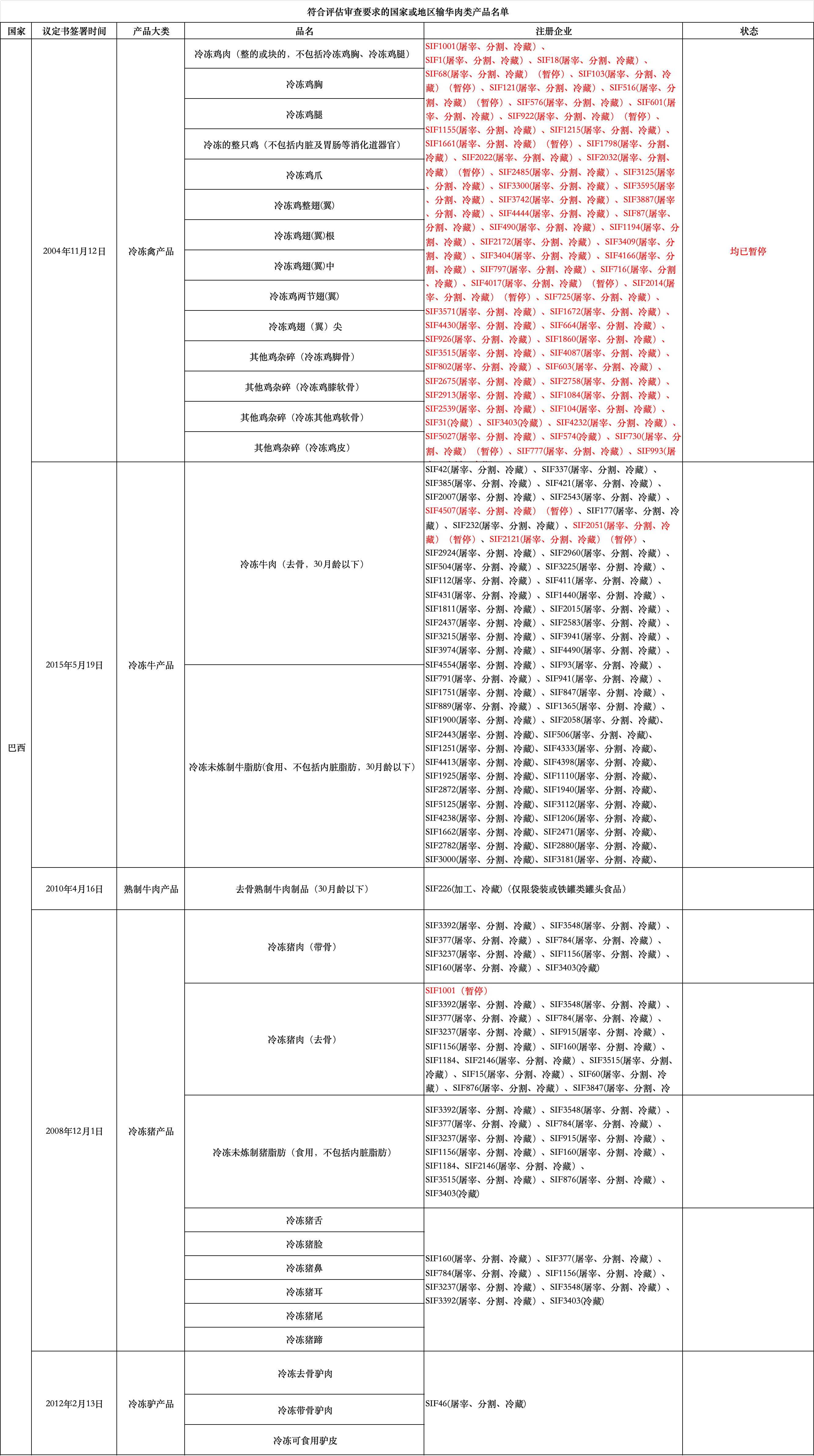 暂停受理巴西禽肉企业自2025年5月17日(含)起启运的输华禽肉产品进口申报。