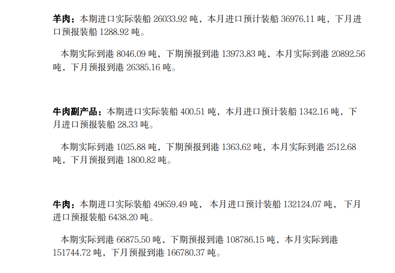 大宗农产品进口信息发布(肉类)