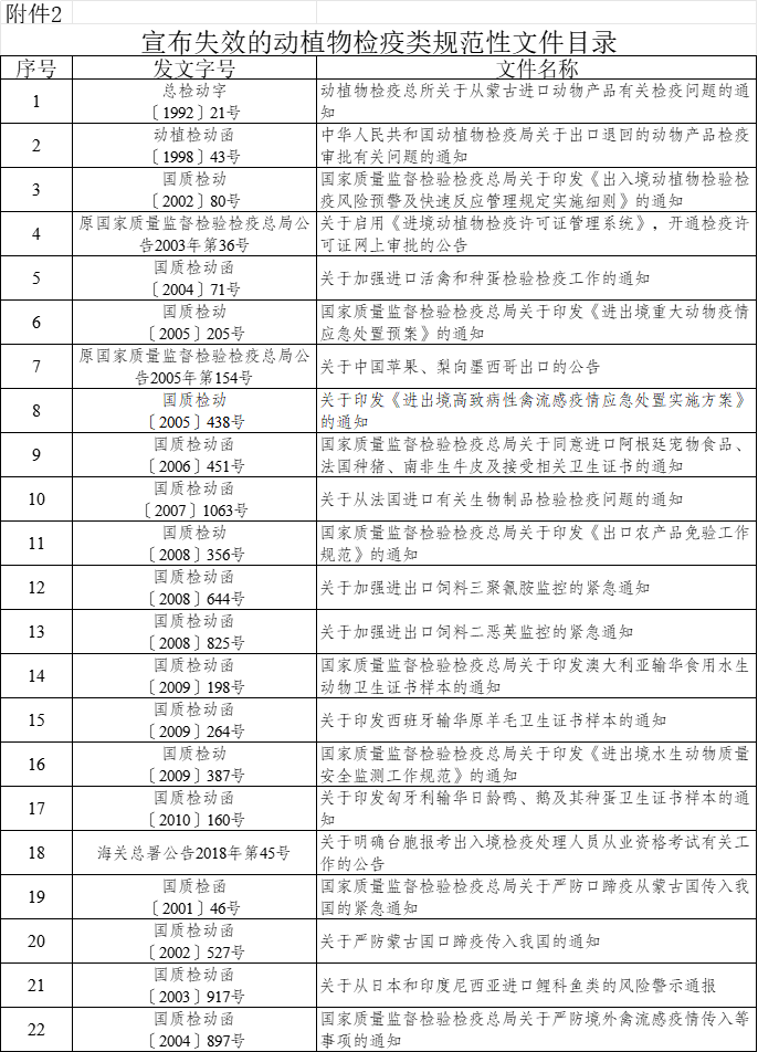(关于废止和宣布失效部分动植物检疫类规范性文件的公告)