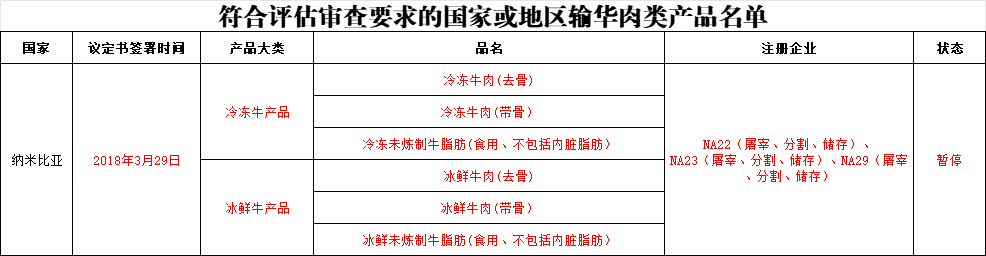 暂停受理纳米比亚牛肉企业自2025年9月17日(含)起启运的输华牛肉产品进口申报。