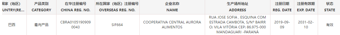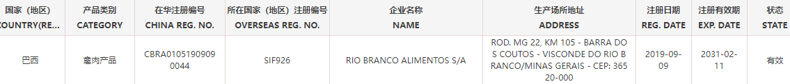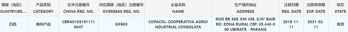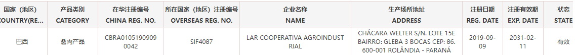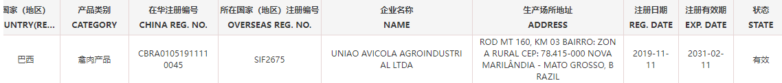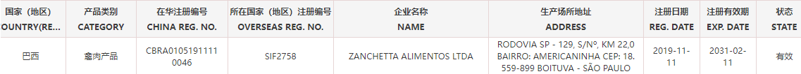 恢复巴西6家禽肉产品(注册编码为:SIF4087、SIF664、SIF926、SIF2675、SIF2758、SIF603)自2025年12月3日(含)后生产的输华产品进口准入。