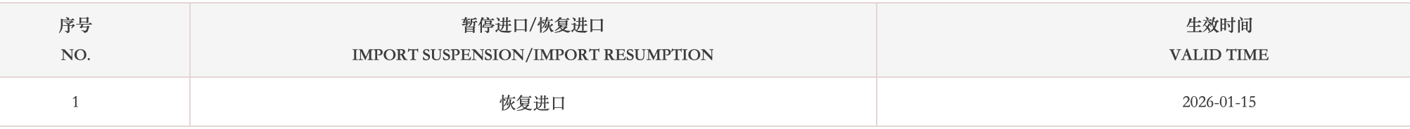恢复加拿大1家牛肉产品(注册编码为:93)自2026年1月15日(含)后生产的输华产品进口准入。