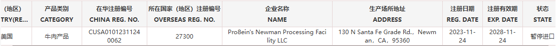 普悦 ·资讯 |【准入更新】暂停美国一家牛肉企业产品输华