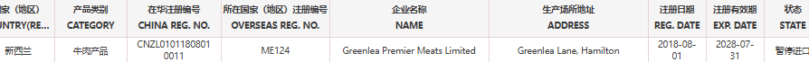 普悦 ·资讯 | 【准入更新】暂停新西兰一家牛肉企业产品输华