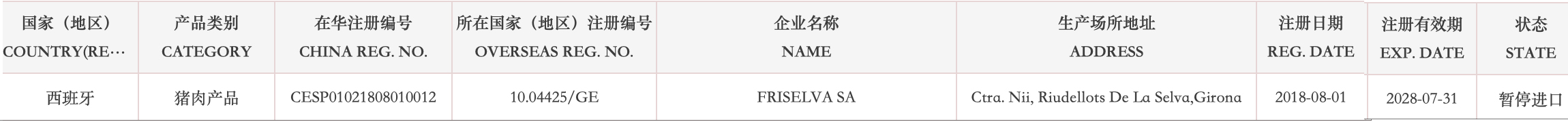 普悦 ·资讯 | 【准入更新】暂停西班牙一家猪肉企业产品输华