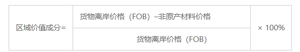 第六条 本办法第三条第一款第(三)项规定的区域价值成分应当按照下列公式计算: