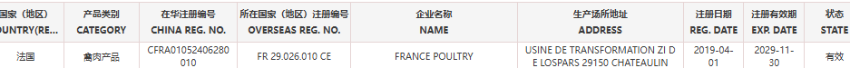 普悦 ·资讯 | 【准入更新】恢复法国3家禽肉企业输华