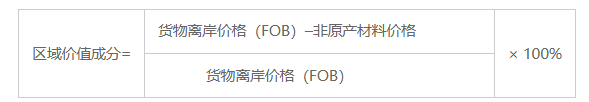 第六条 本办法第三条第一款第(三)项规定的区域价值成分应当按照下列公式计算: