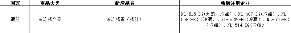 如下图,新增了荷兰冷冻猪产品的部分输华品类: