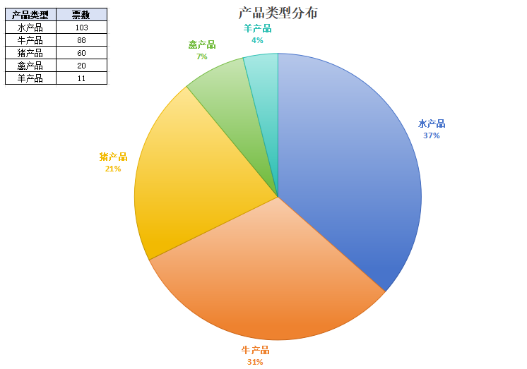 紧随其后的是牛肉产品,共计88票,占据了总体比重的31%,其中检出氟佐隆不符合食品安全国家标准规定占了38票之多。猪产品以60票的数量排名第三,睾酮不符合食品安全国家标准规定占了9票之多。禽产品以20票的数量排名第四,感官检验不符合食品安全国家标准规定占了9票之多。羊产品以11票的数量排在最后一名,污秽腐败占了7票之多。