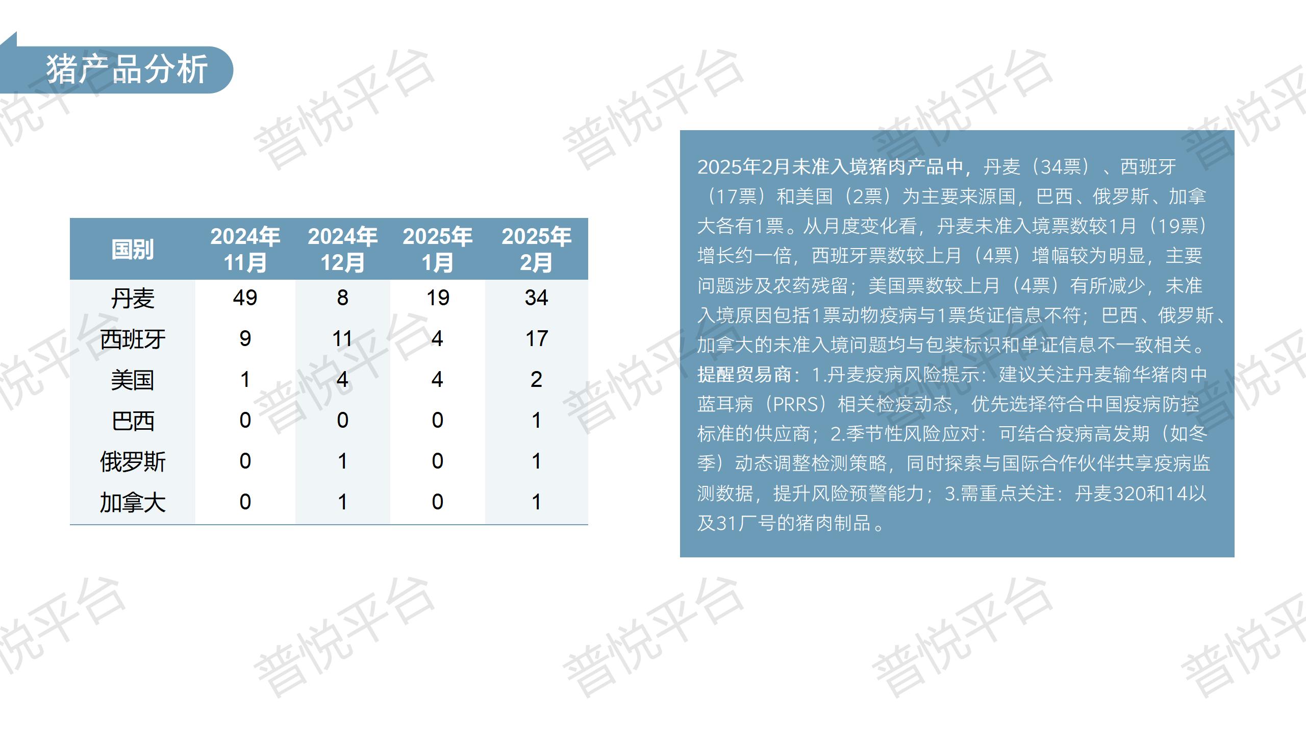 2025年1月未准入境猪、牛、羊、禽、水产品的食品信息