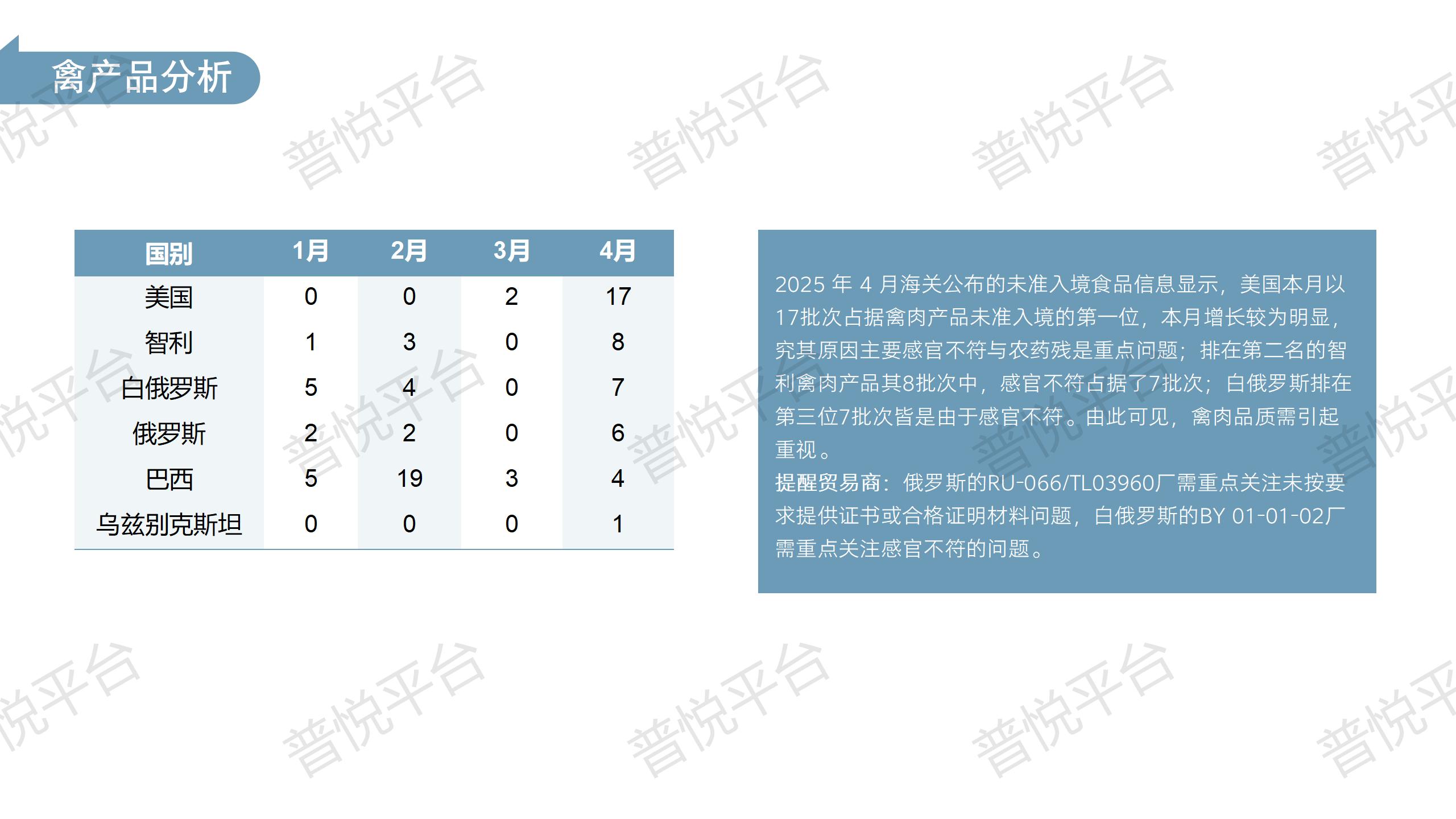 2025年4月未准入境肉类及水产品食品信息分析