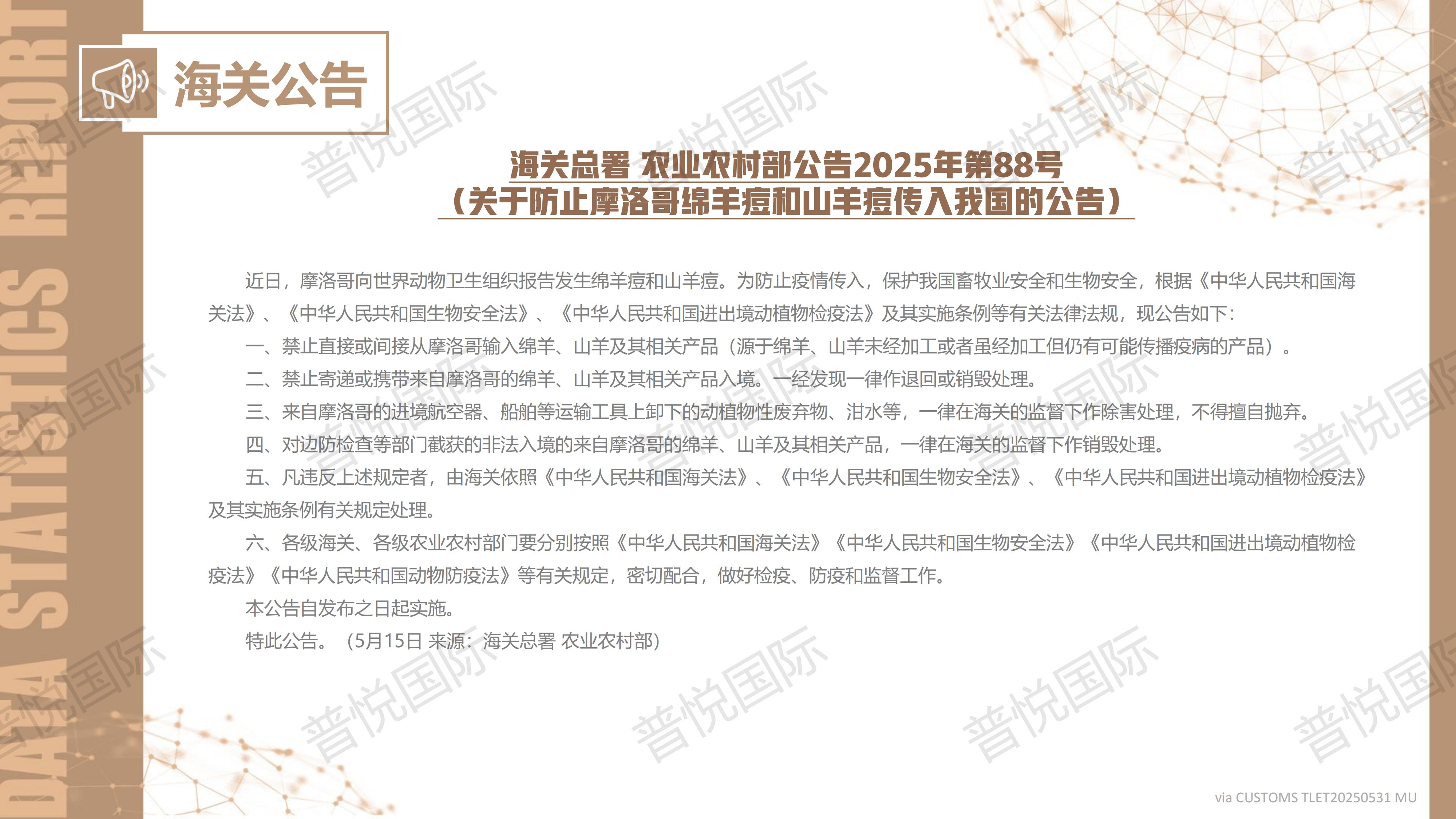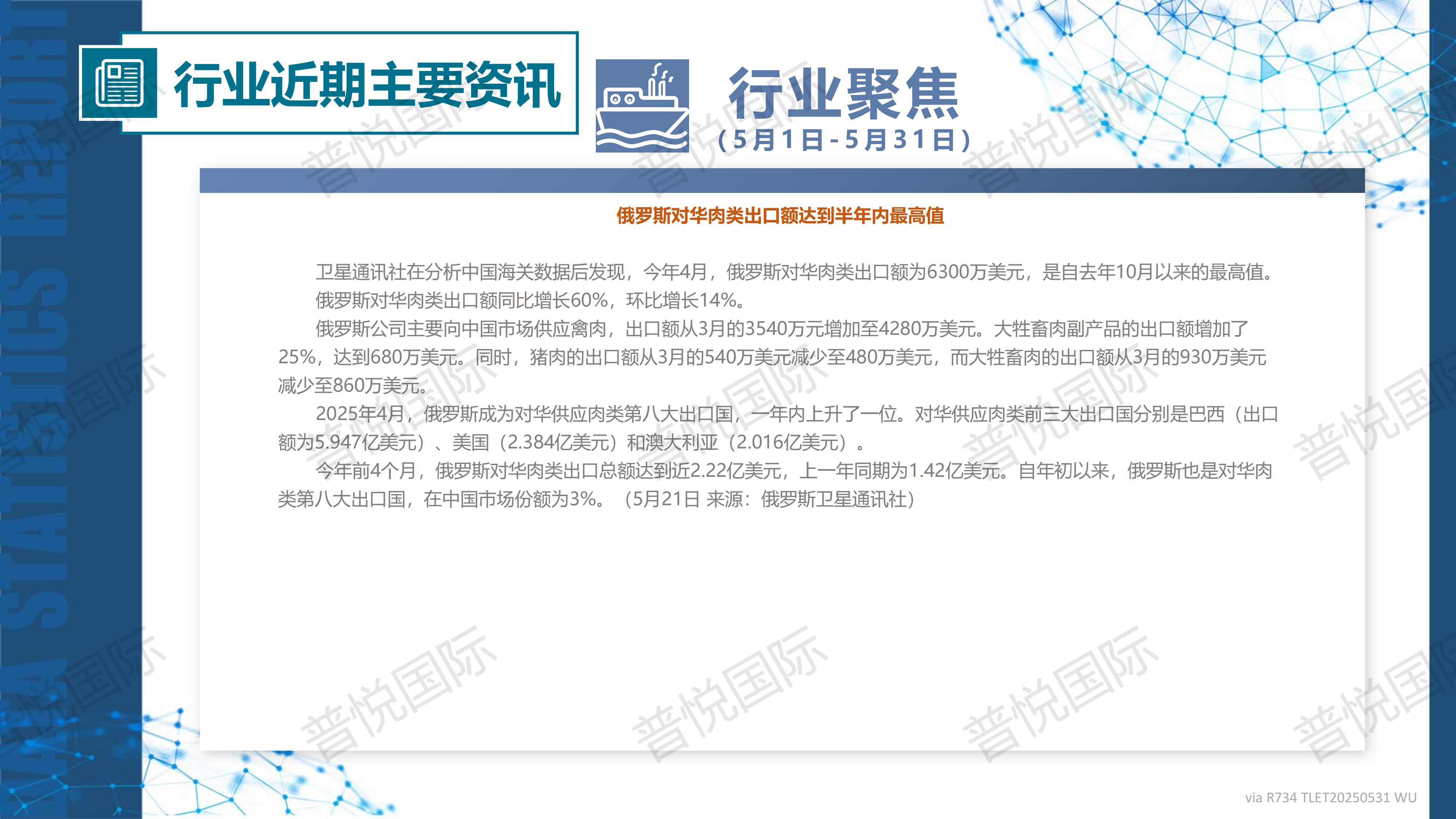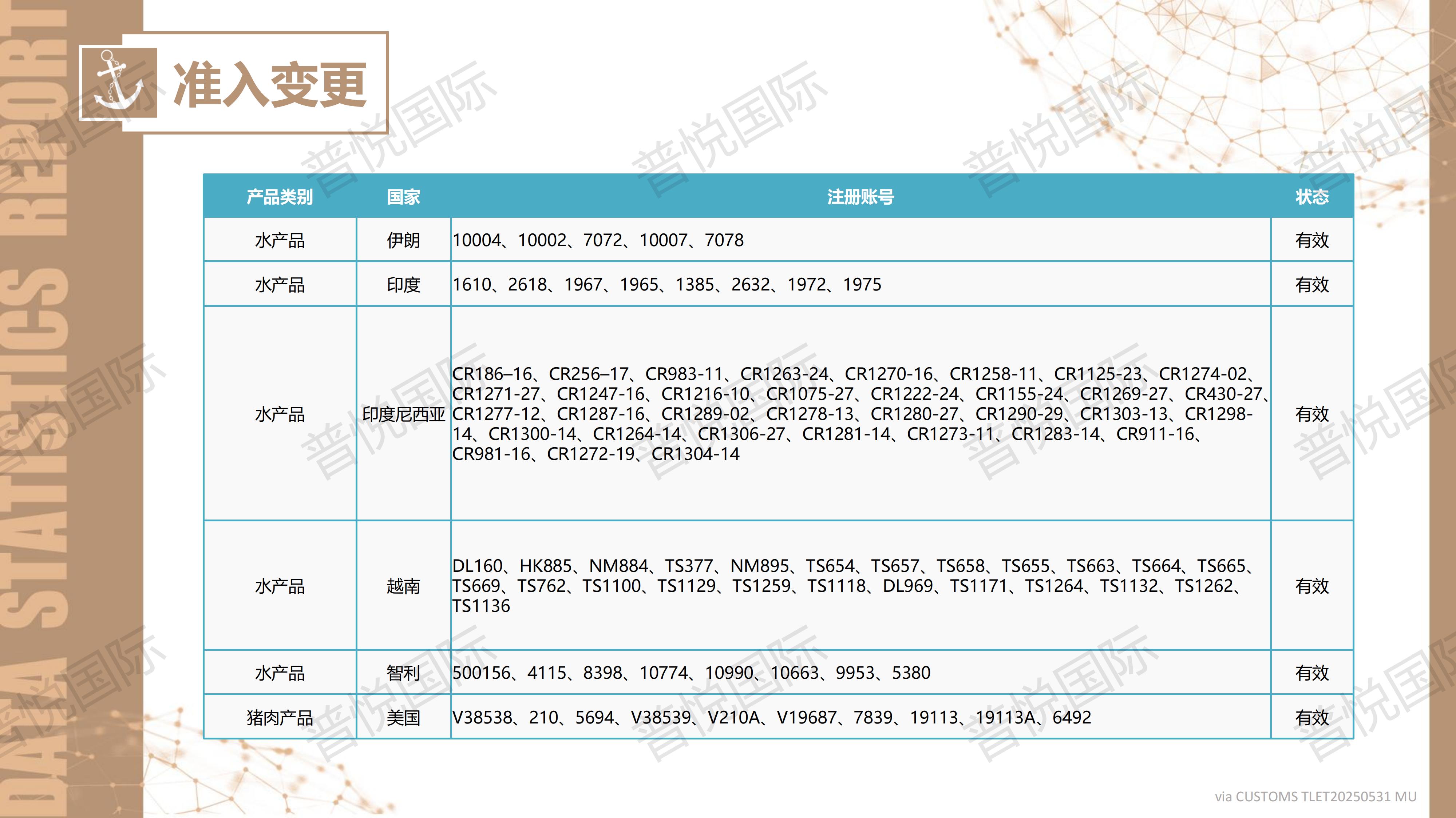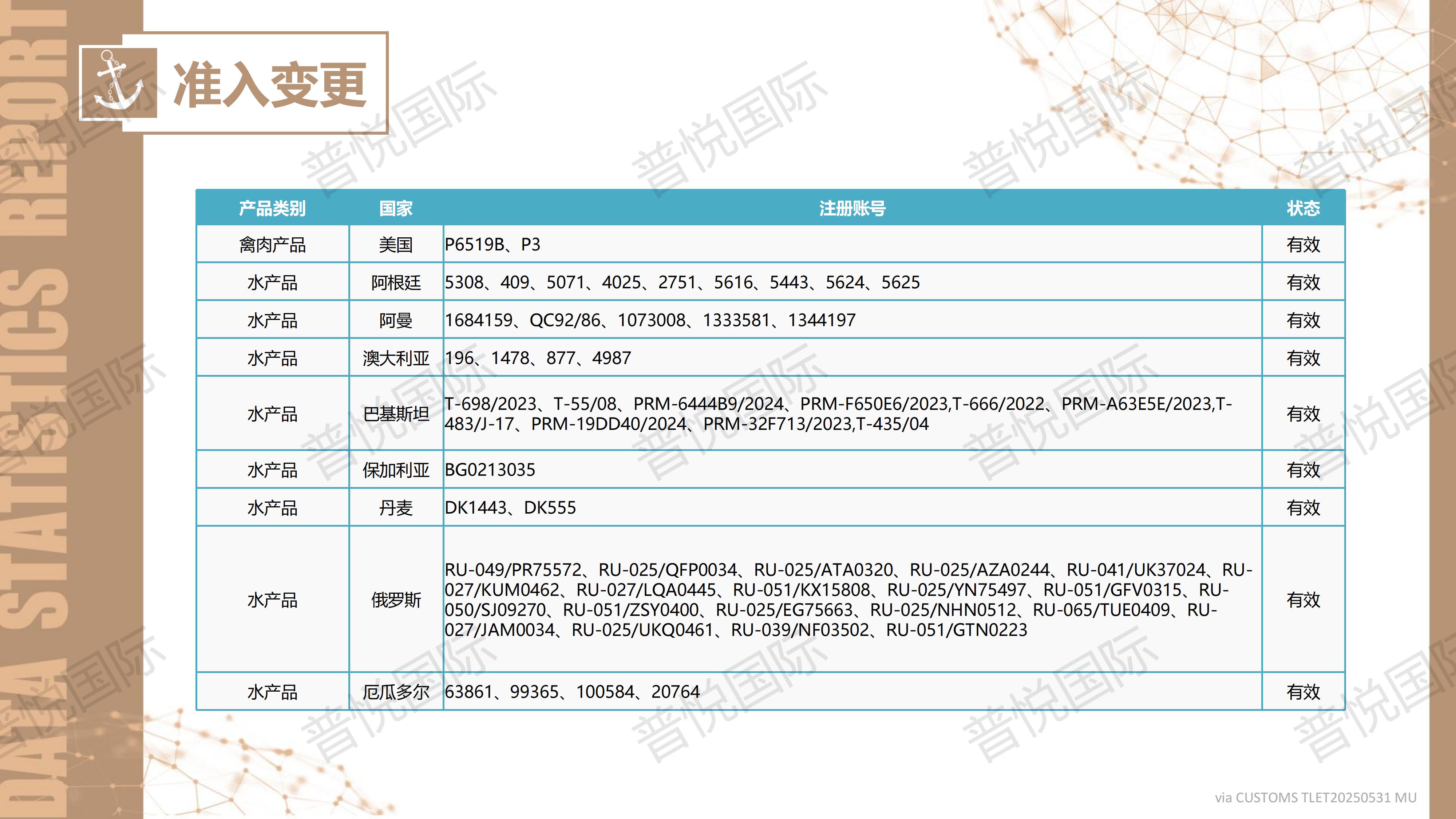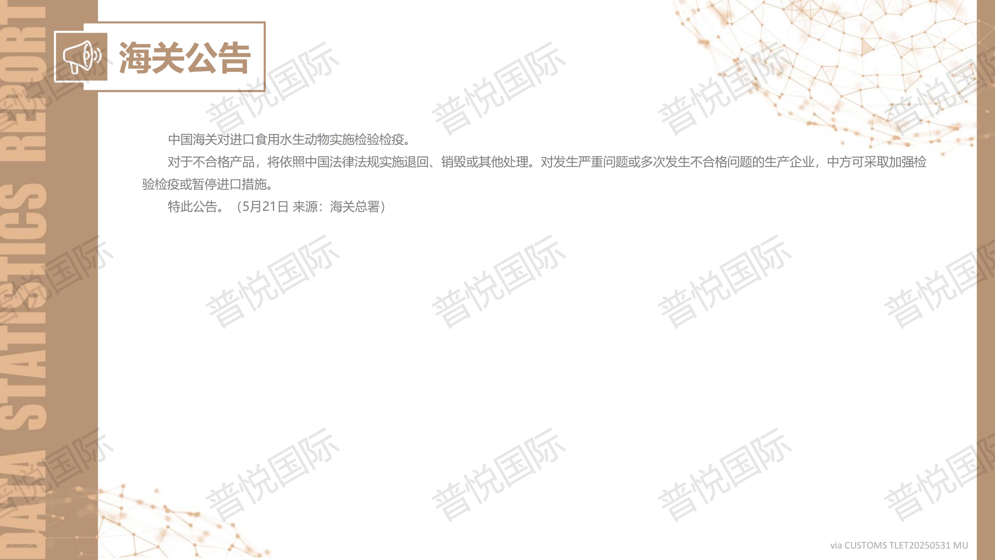 2025年5月未准入境猪、牛、羊、禽、水产品的食品信息
