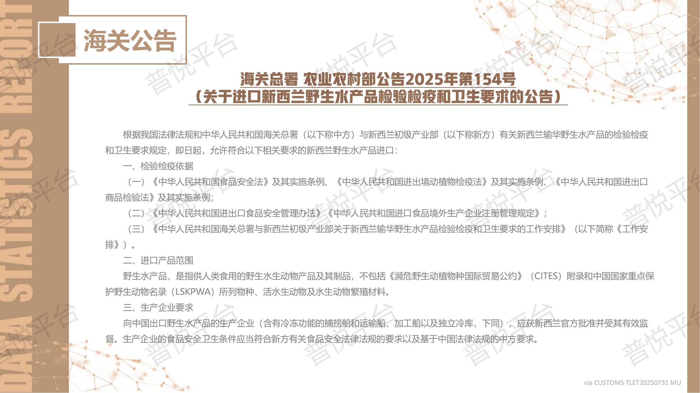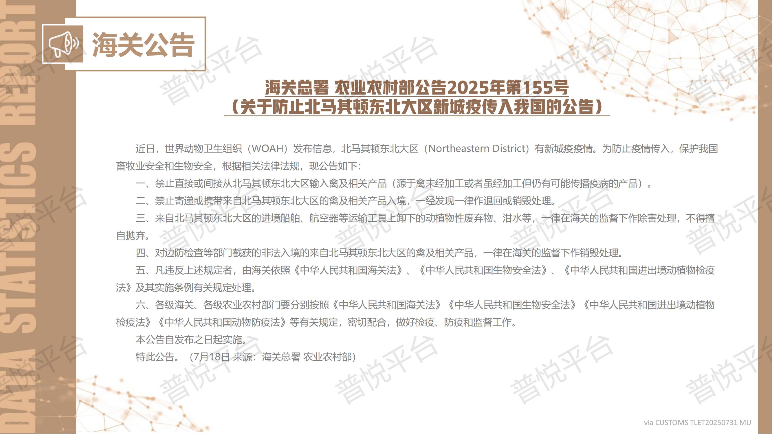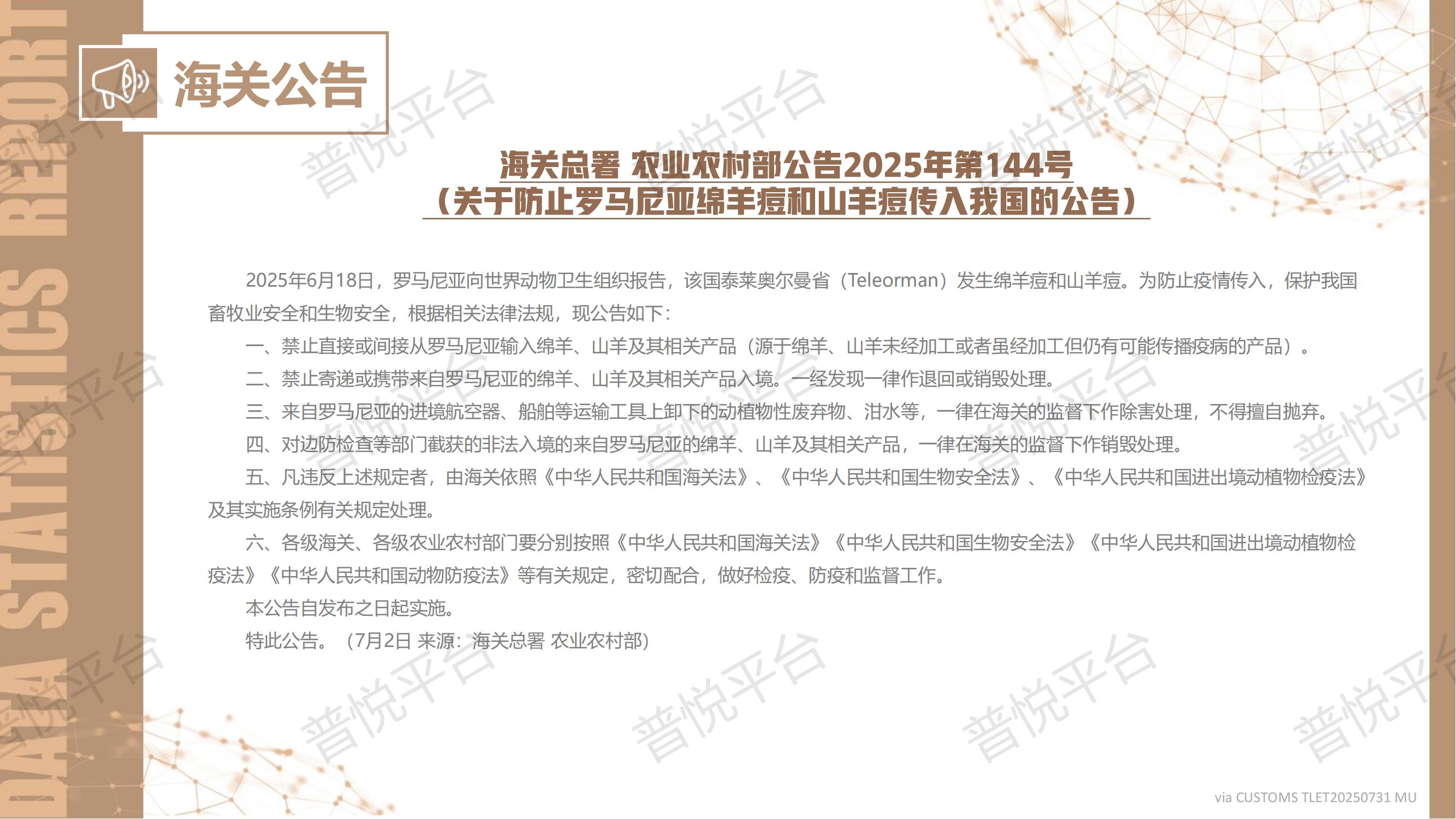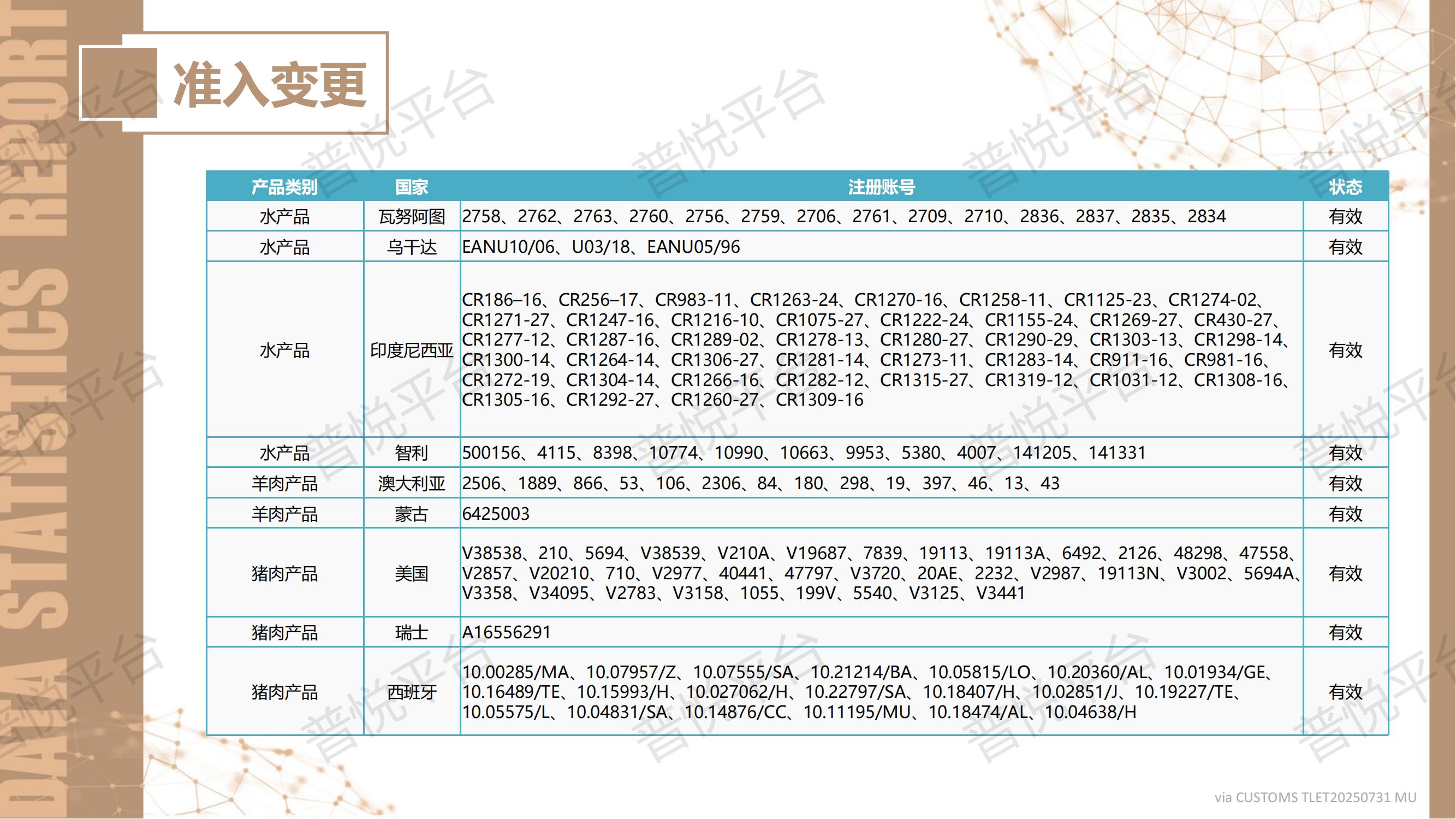 2025年7月未准入境猪、牛、羊、禽、水产品的食品信息