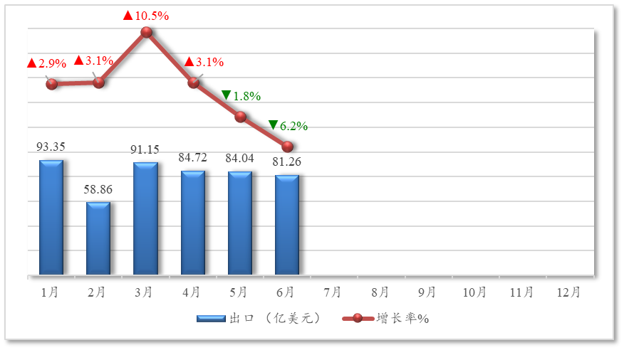 据海关统计,2025年1-6月,我国农产品出口总额493.4亿美元,比上年同期增长1.8%,占我国外贸出口总额2.7%。继5月出口额小幅下降,6月出口额再度下滑。