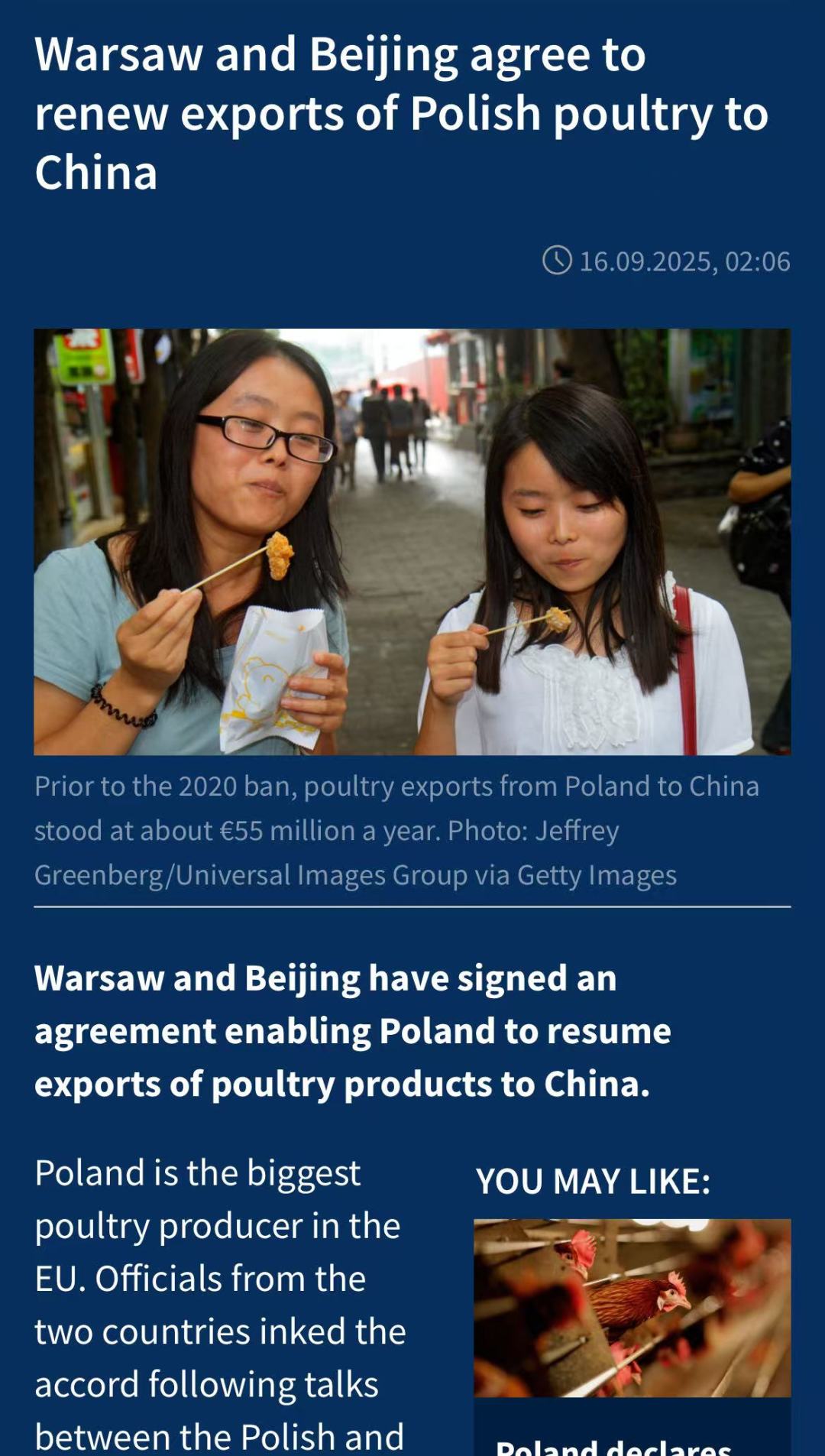 中国与波兰就家禽出口达成协议
