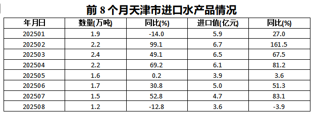 普悦 ·关注 | 前8个月天津市进口水产品量价齐增