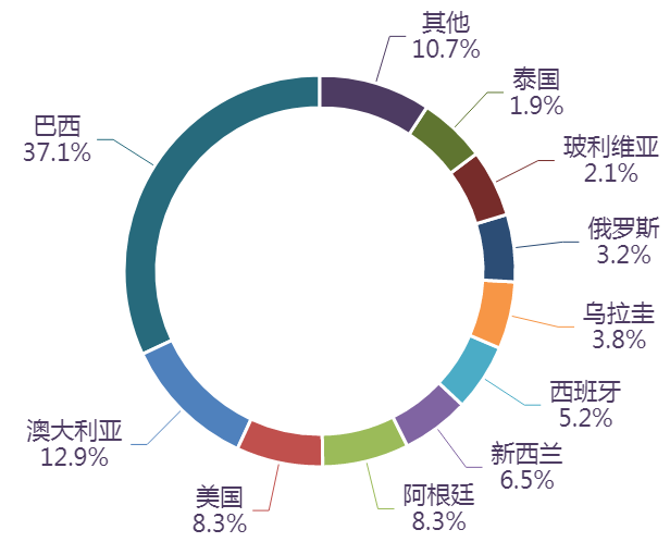 市场方面,前9个月,我国肉类及制品进口额排名前十的国家/地区分别为巴西、澳大利亚、美国、阿根廷、新西兰、西班牙、乌拉圭、俄罗斯、玻利维亚、泰国,合计占我国该产品进口额的89.3%。