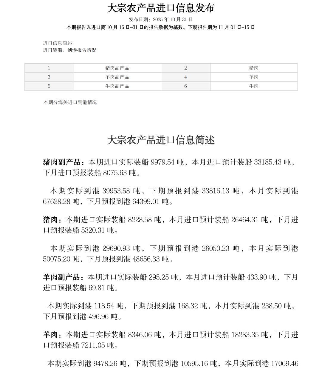 普悦 ·资讯 | 大宗农产品进口信息发布(肉类)