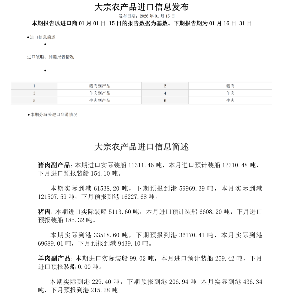 大宗农产品进口信息发布(肉类)