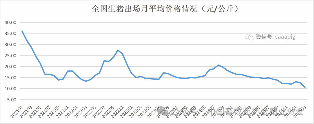 3、2026年3月份全国生猪出场价格10.59元/公斤,环比下跌15.6%,同比下跌30.3%。
