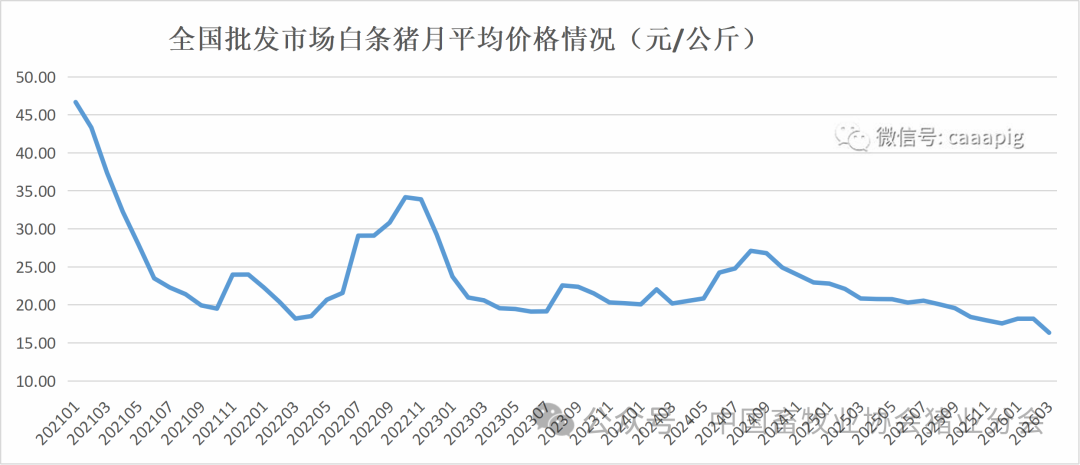 4、2026年3月份全国批发市场白条猪价格16.34元/公斤,环比下跌10.1%,同比下跌21.6%。